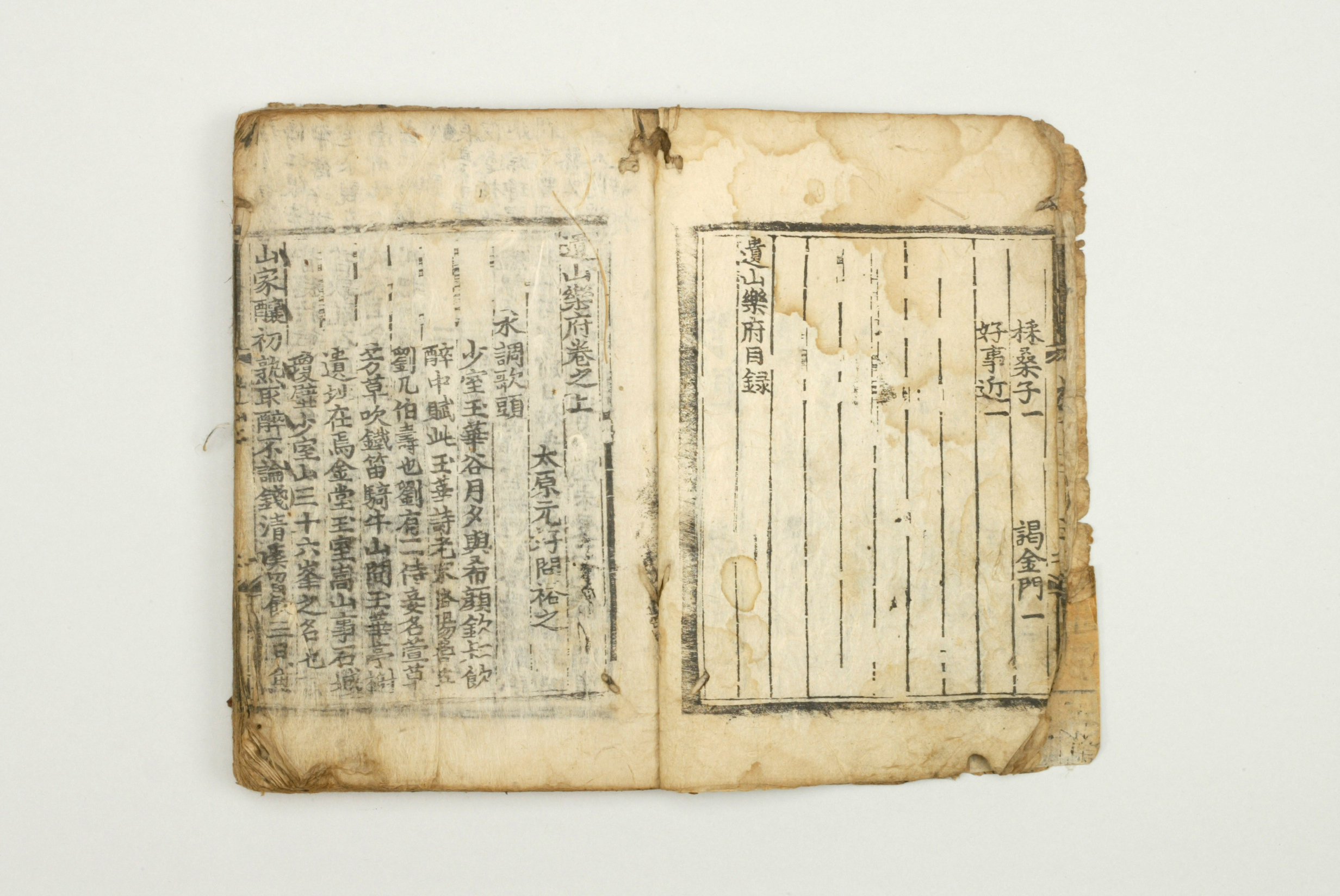 내용 : 이제현(李齊賢)이 원나라에서 수집한 여러 학자들의 악부(樂府)와 사곡. 경주목사인 이종준(李宗準)이 '弘治紀元之五年'에 간행. 목판본. 사주쌍변(四周雙邊). 반엽(半葉) 10행. 표지 오른쪽은 꼰실로 5바늘 꿰어 엮음. 표지 2장, 본문 84장. '鄭敍'의 題·목록·한라 상·중·하로 구성됨. 관주와 인장 4방이 찍혀 있음. 여백과 일부에 보정된 글이 있음.