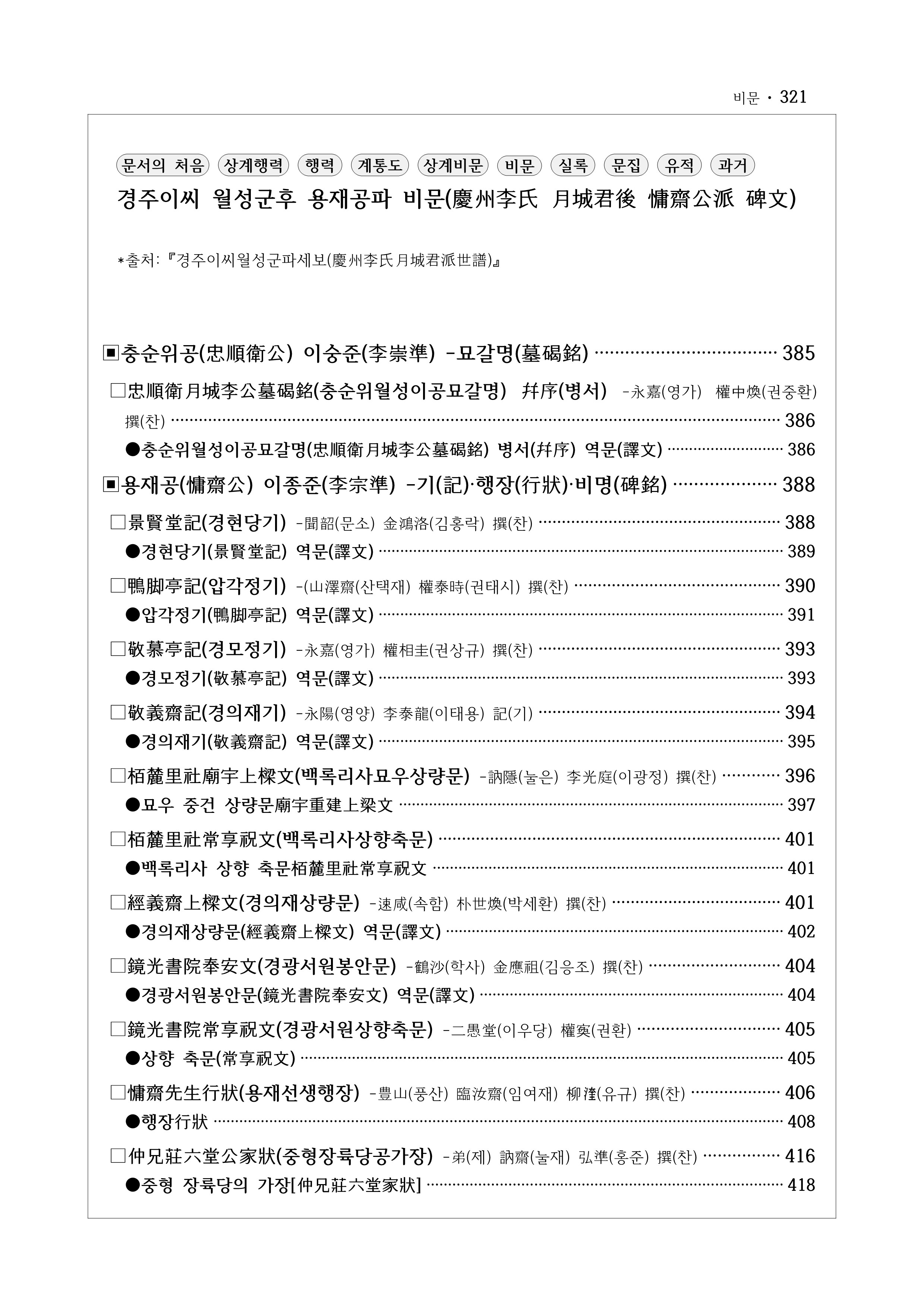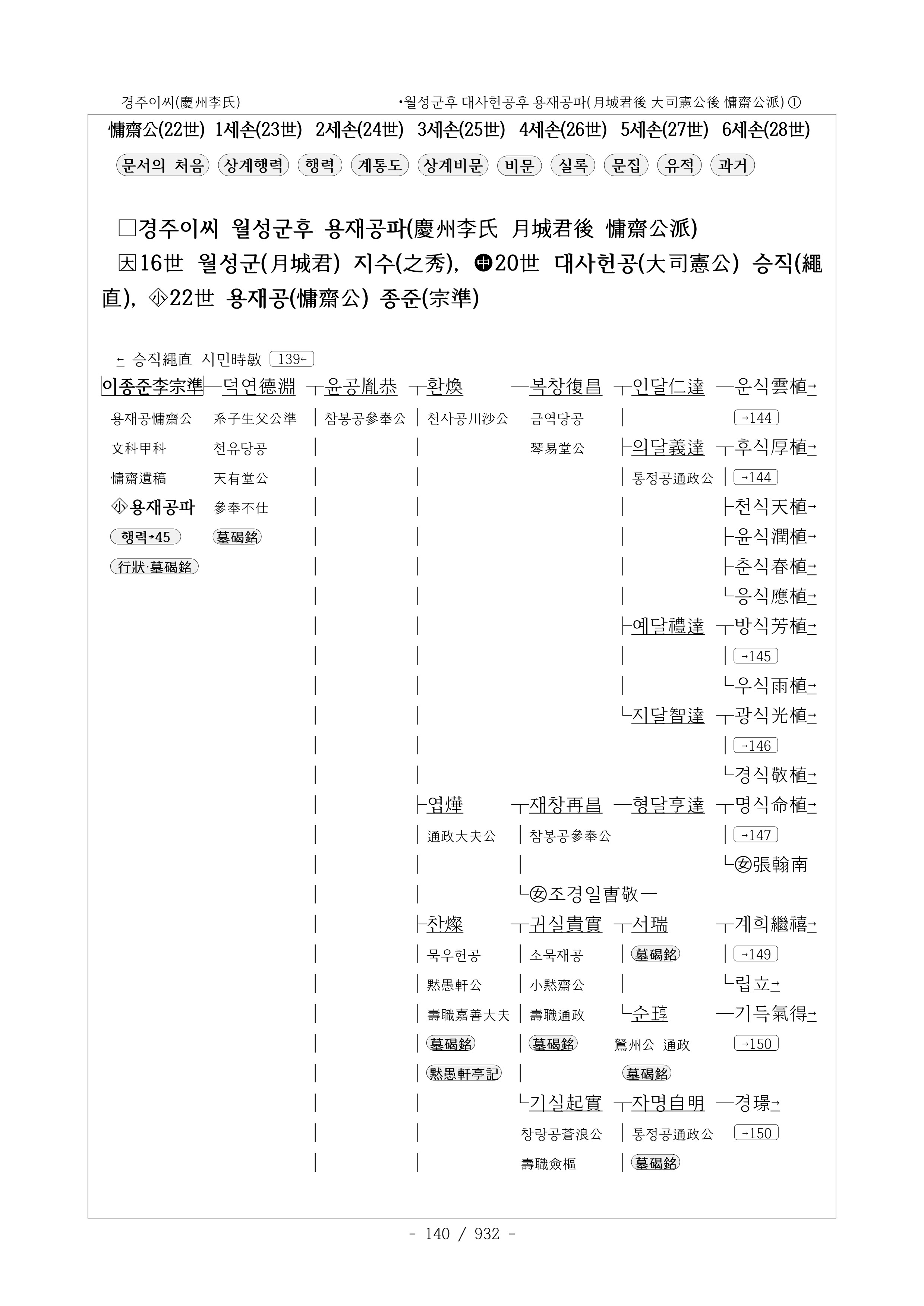 □경주이씨 월성군후 용재공파 행력(慶州李氏 月城君後 慵齋公派 行歷)
