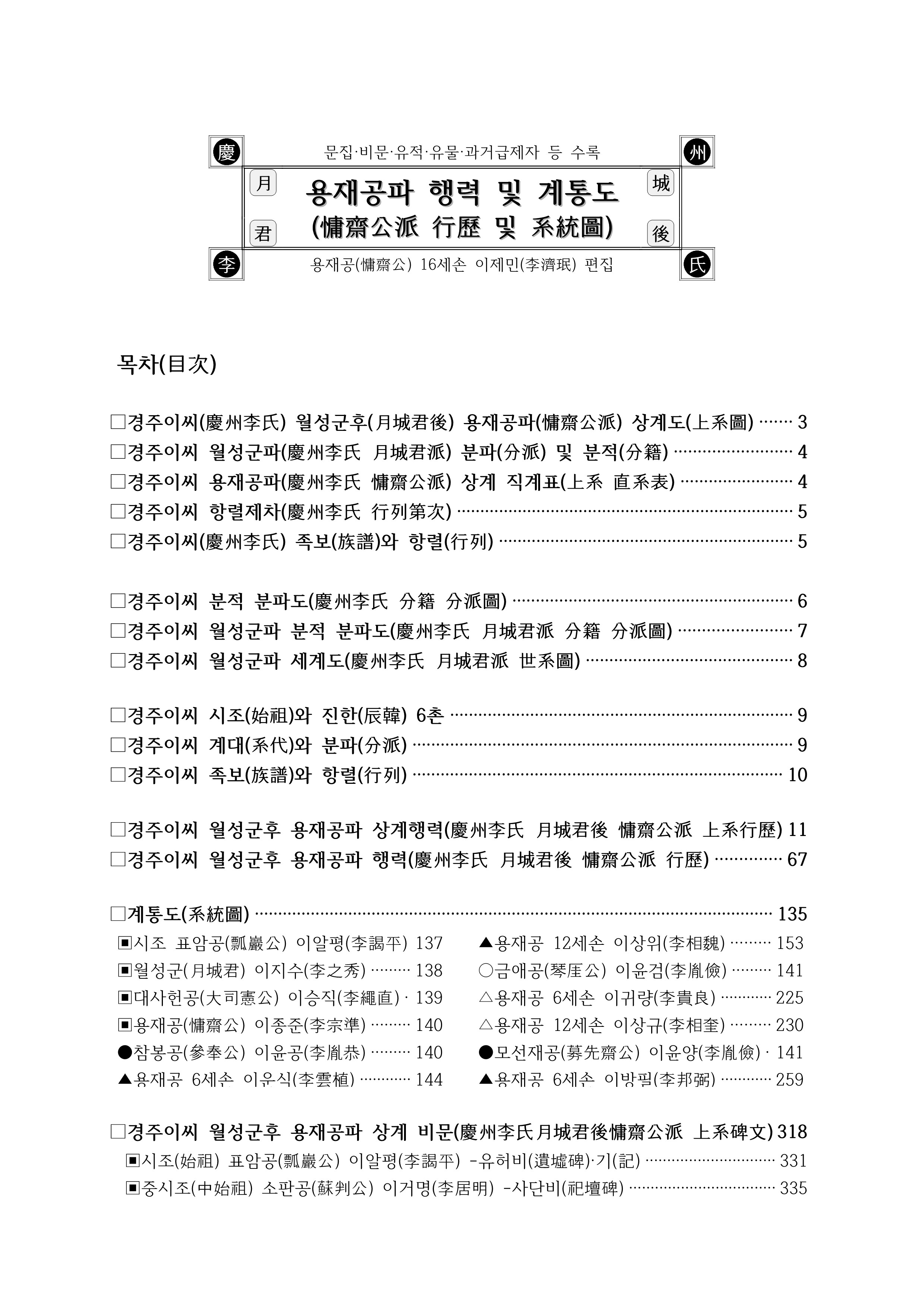 □경주이씨 월성군후 용재공파 상계행력(慶州李氏 月城君後 慵齋公派 上系行歷)