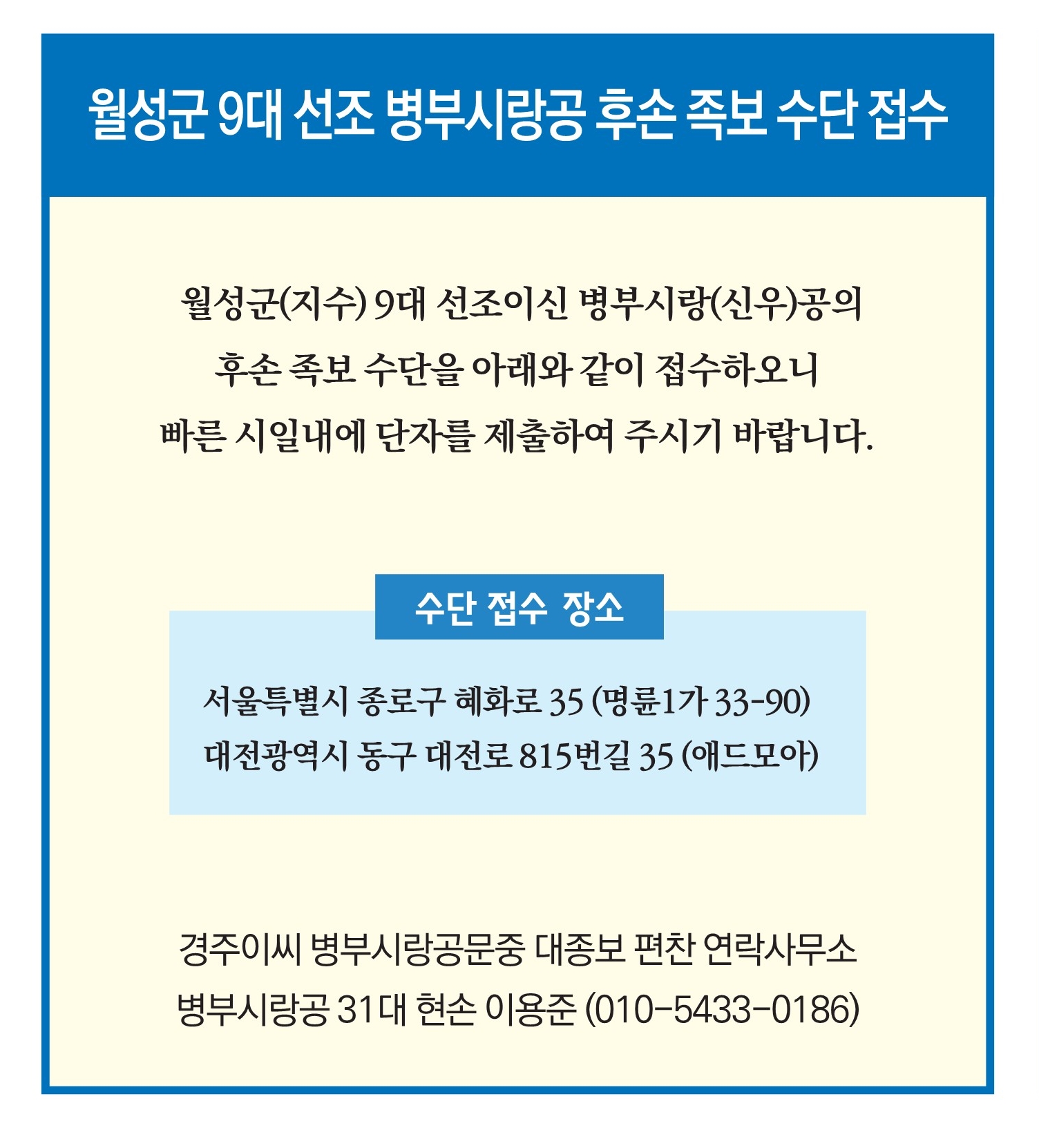 경주이씨 병부시랑공문중 대종보 편찬 연락사무소