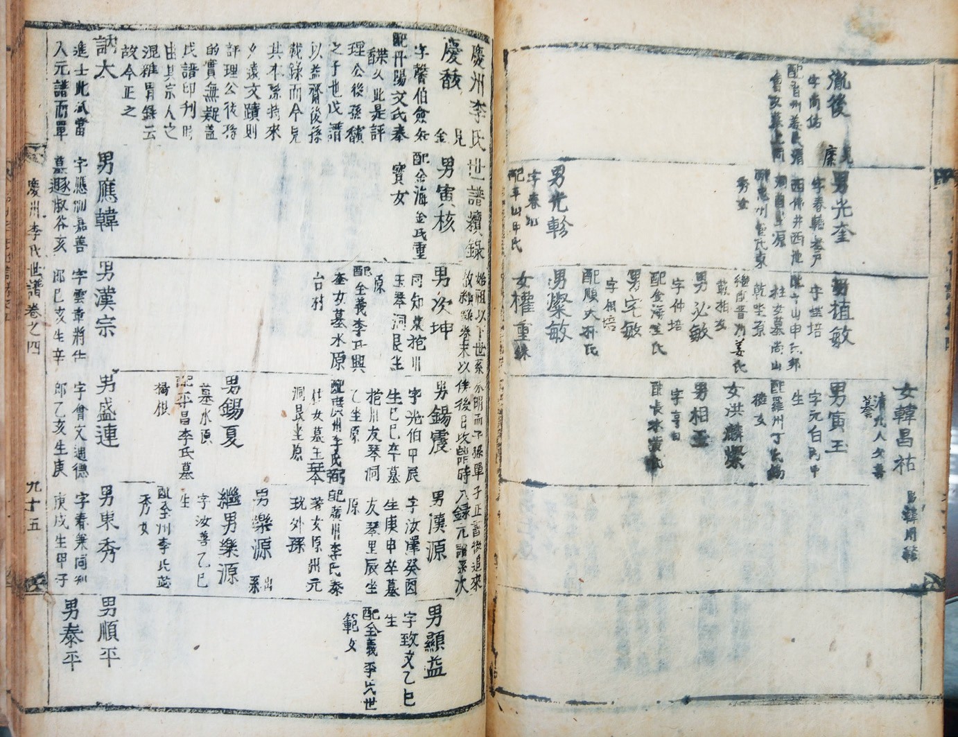 족보는 혈통을 실증하는 문헌으로 중국에서 황제연표를 기술하면서 처음 시작했다. 우리나라는 고려 때 김관의가 작성한 <왕실계통기술>이 효시가 되고 있다. 왕실 이외 사가에선 세종 5년(1423) 문화유씨의 <영락보>가 시초이나 현재 서문만 남아 있다. 성종 7년(1467) 안동권씨의 <성화보>가 가장 오래된 족보이며, 명종 17년(1567) 문화유씨의 <가정보>에서 부부가 최초로 등재되었고, 족보의 체계화는 조선후기 인쇄술의 발달로 본격화되었다.