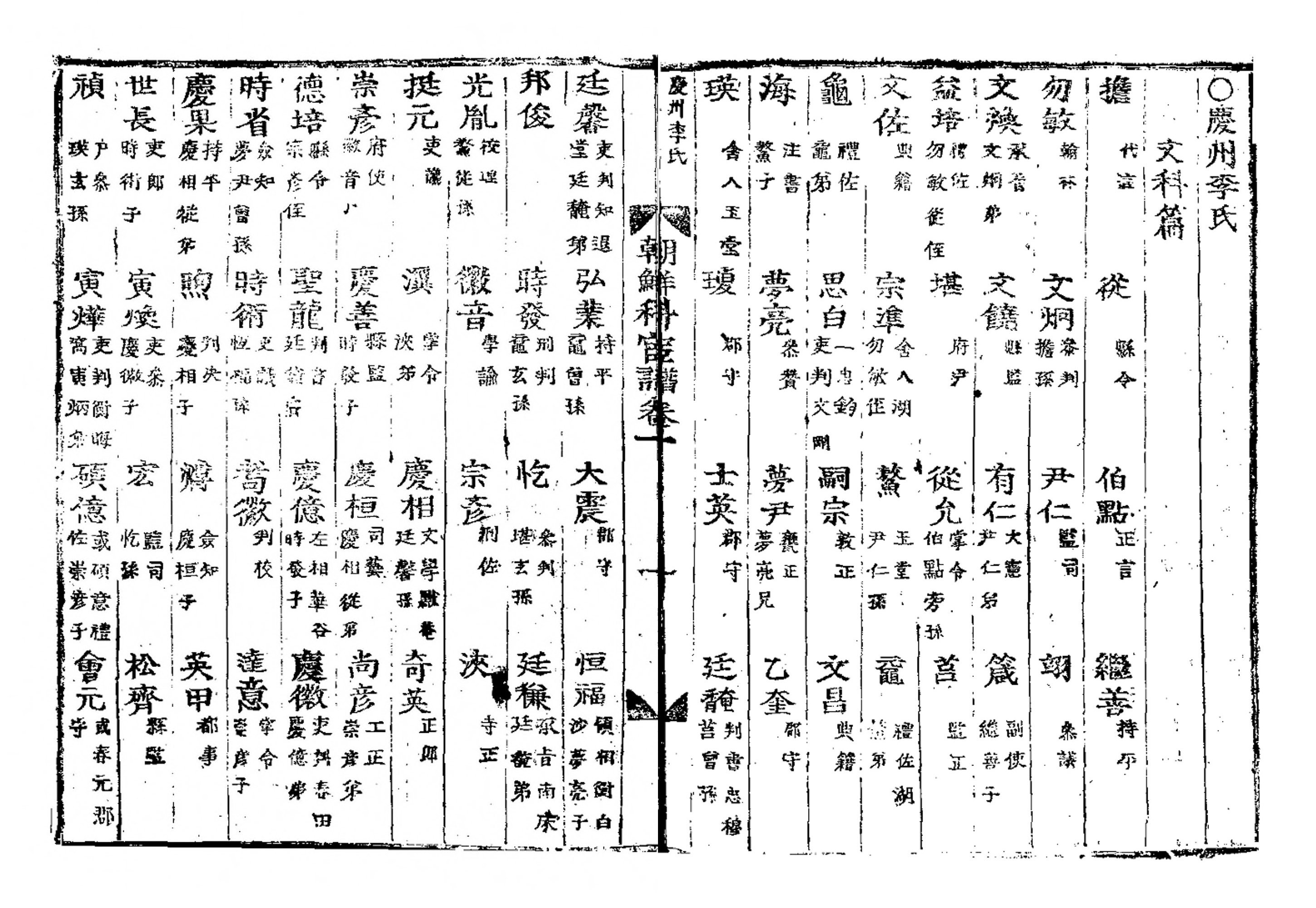 ▶ 서명 : 조선과환보 (朝鮮科宦譜v1)