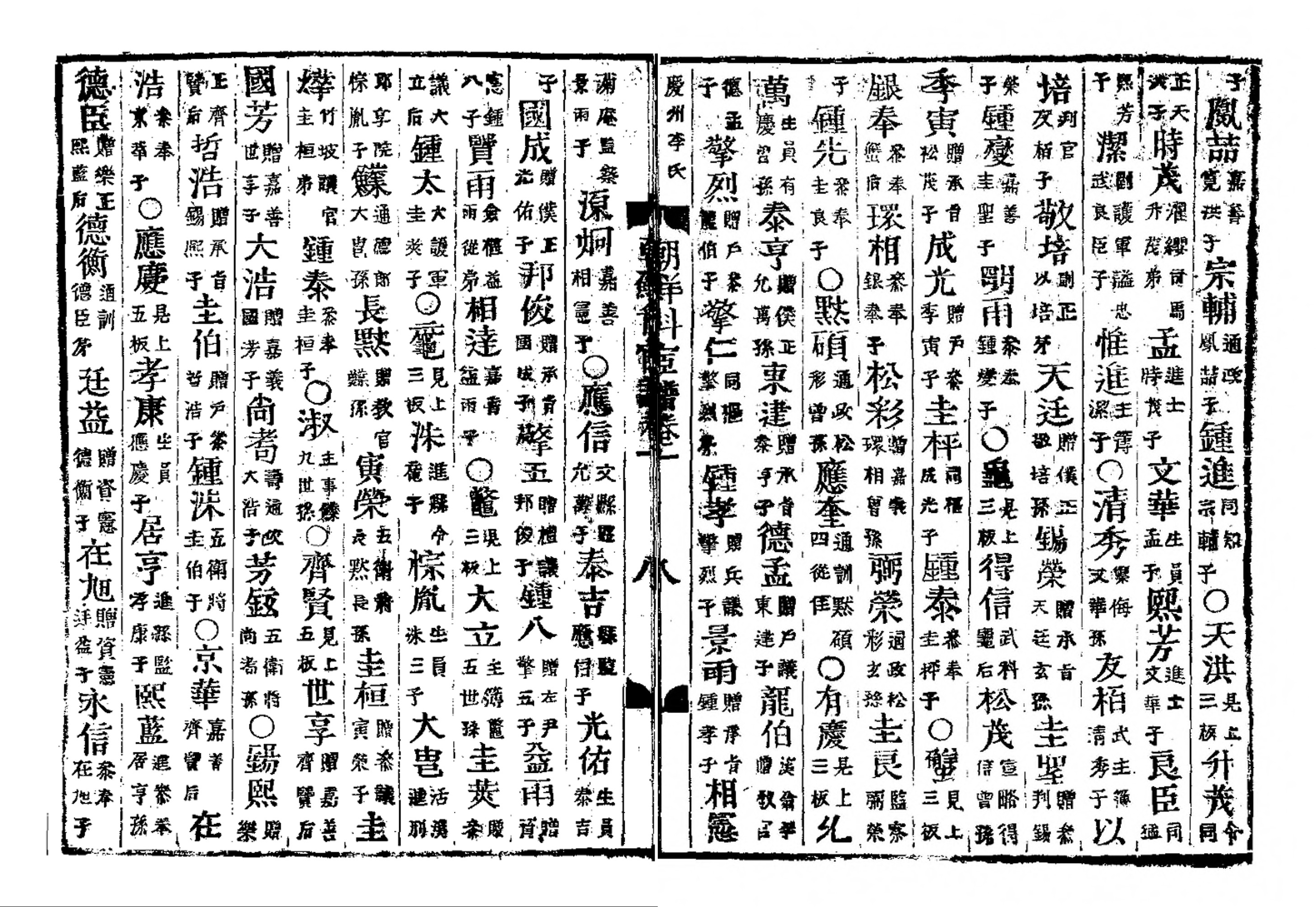 正齊賢后]哲浩[주:贈承旨錫煕子]圭伯[주:贈戶參哲浩子]鍾洙[주:五衛將圭伯子]○京華[주:嘉善齊賢后]在浩[주:參奉京華子]○應慶[주:見上五板]孝康[주:生員應慶子]居亨[주:進縣監孝康子]煕藍[주:進參奉居亨孫]