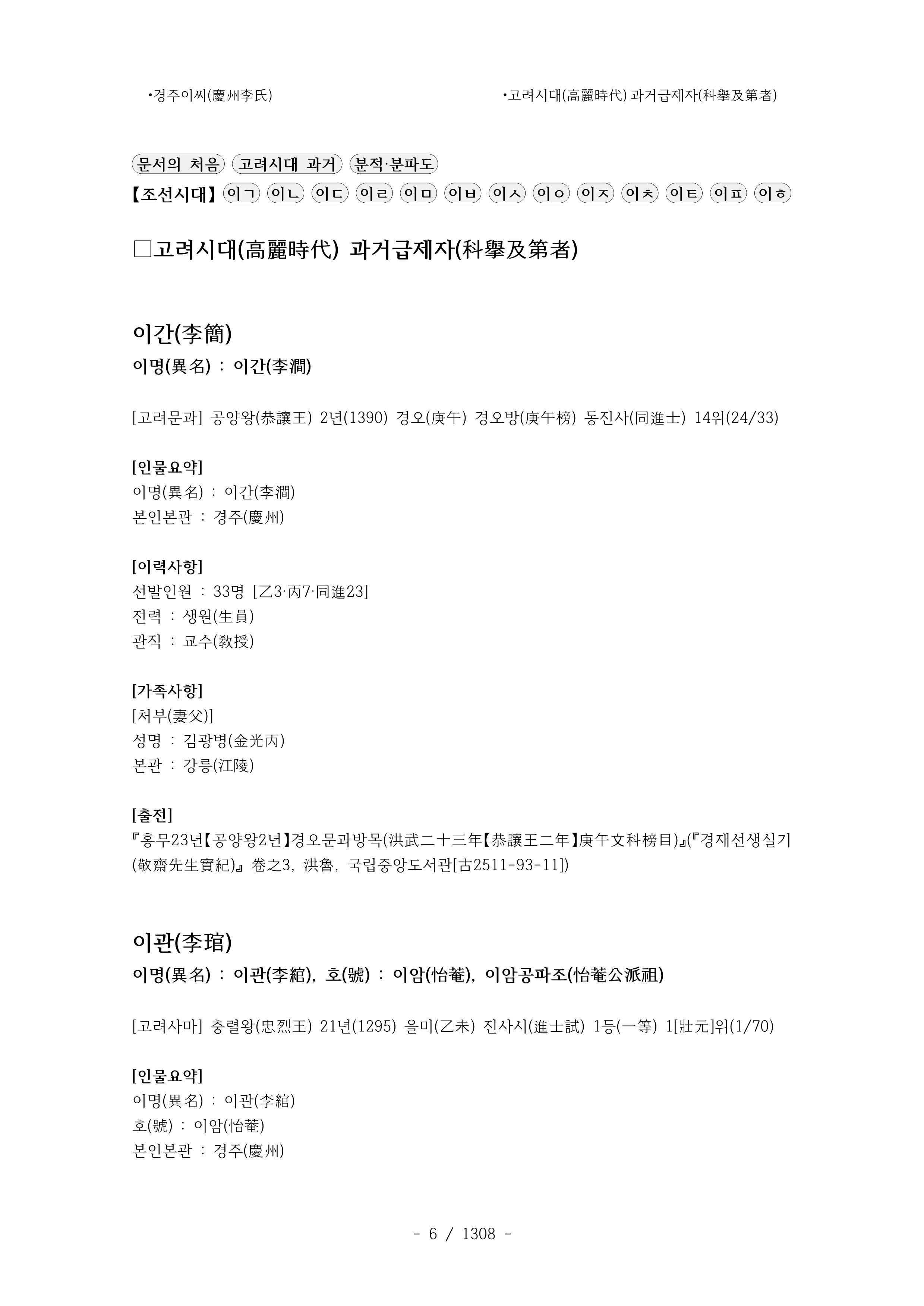 | 경주이씨의 고려시대(高麗時代) 과거(科擧) 급제자(及第者) 목록 (고려문과, 고려사마) (0) | 2020.01.06 |