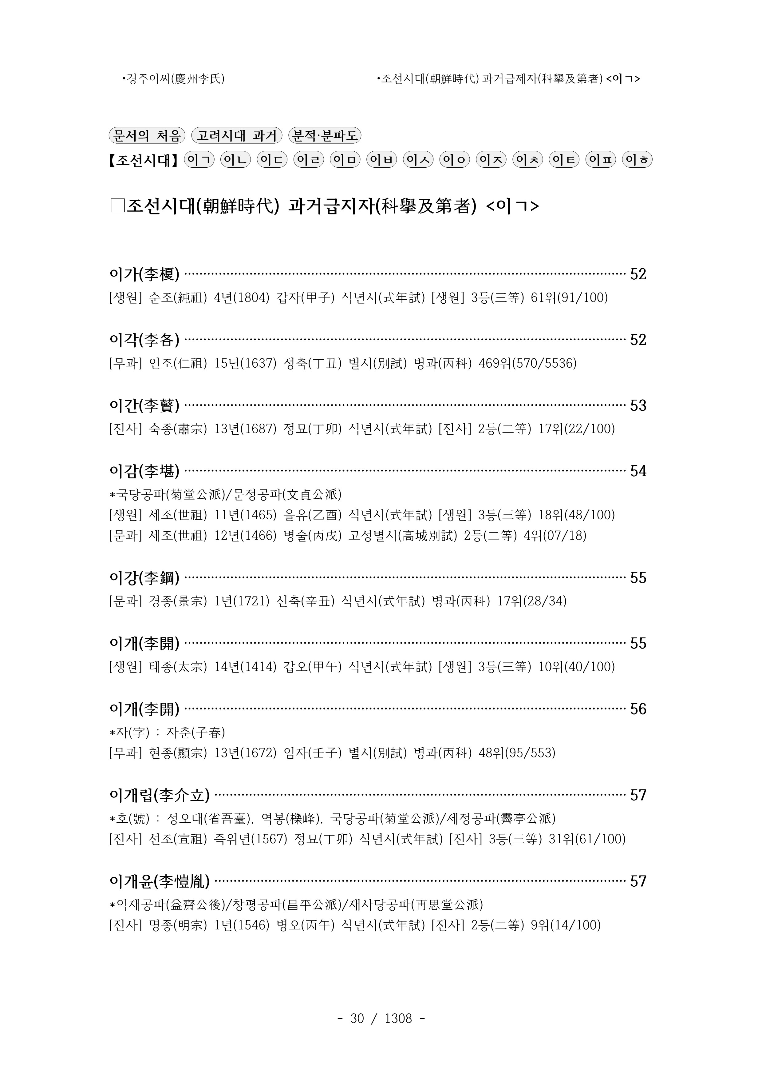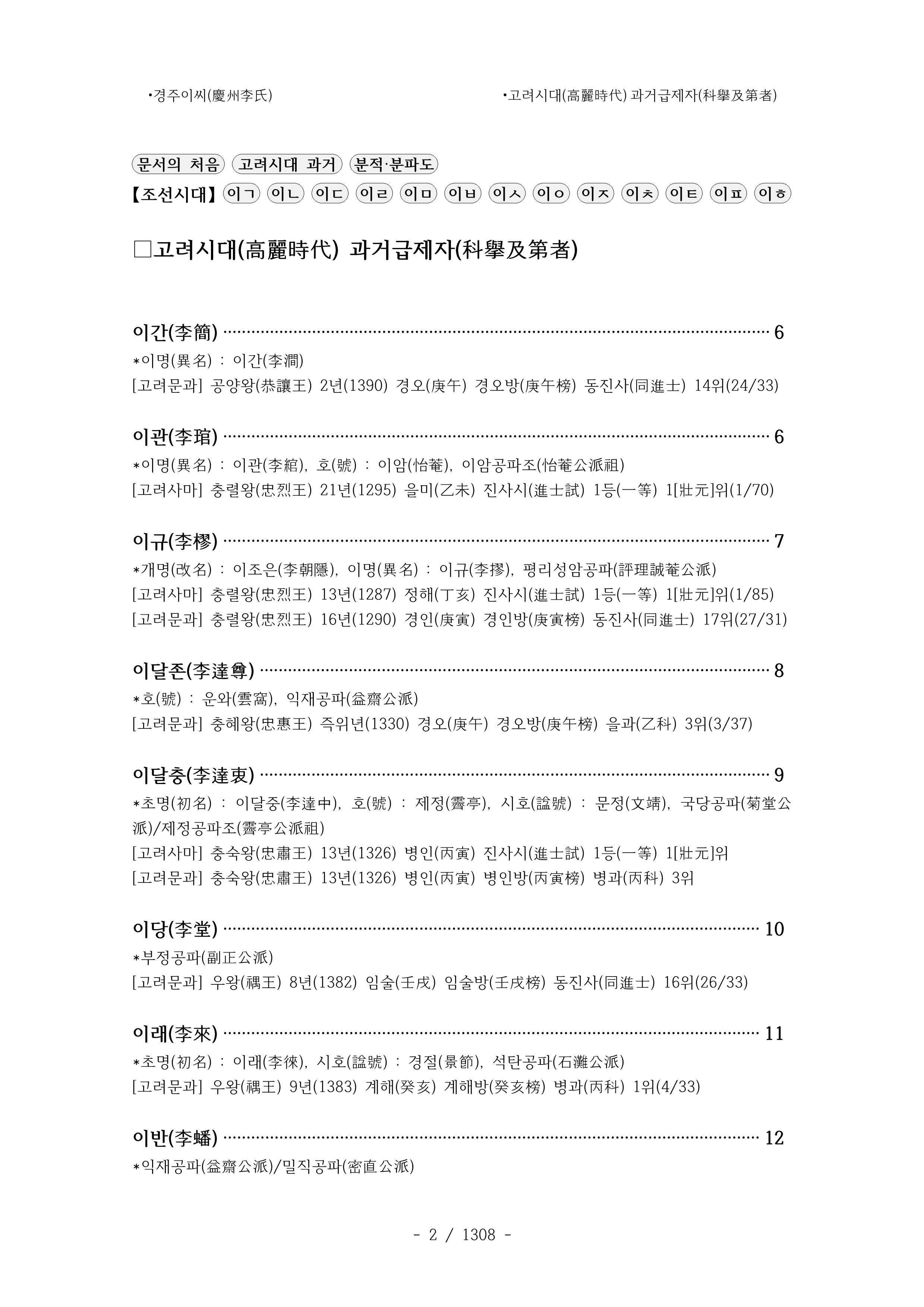 경주이씨 과거급제자 목록(慶州李氏 科擧及第者 目錄)