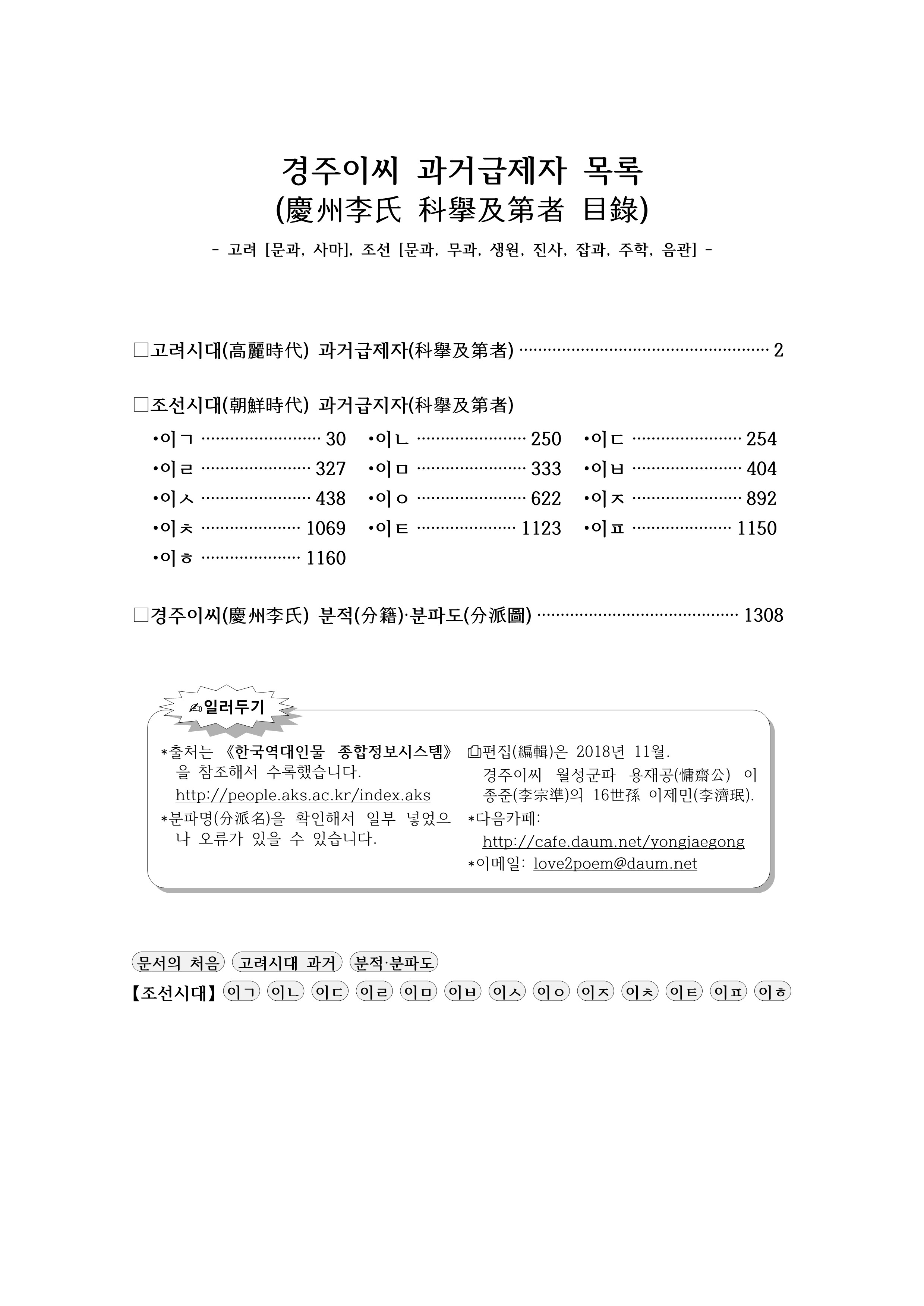 경주이씨(慶州李氏) 과거급제자(科擧及第者) 목록 (배포용).xlsx