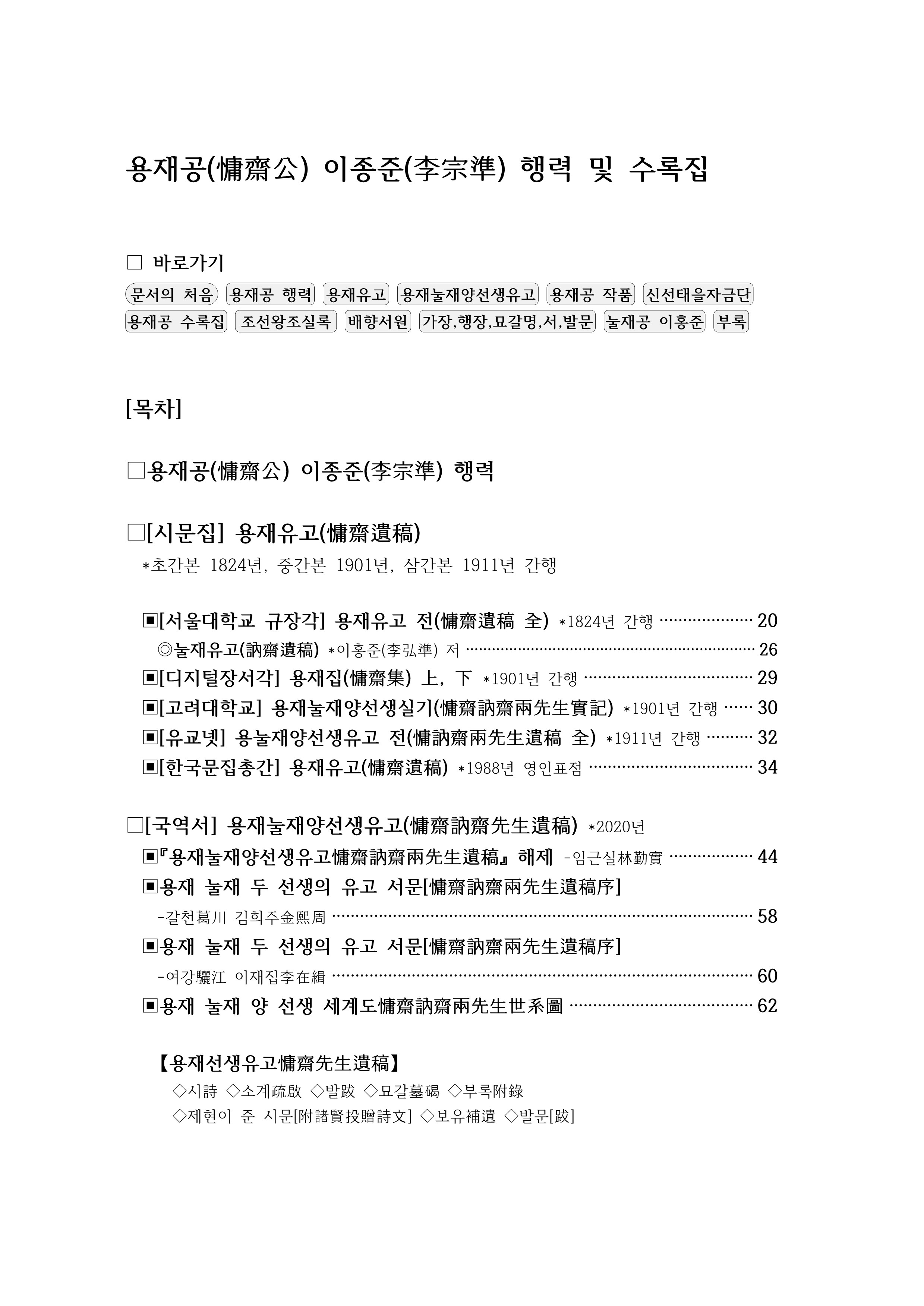 용재공(慵齋公) 이종준(李宗準) 행력 및 수록집 (배포용).hwp.z01