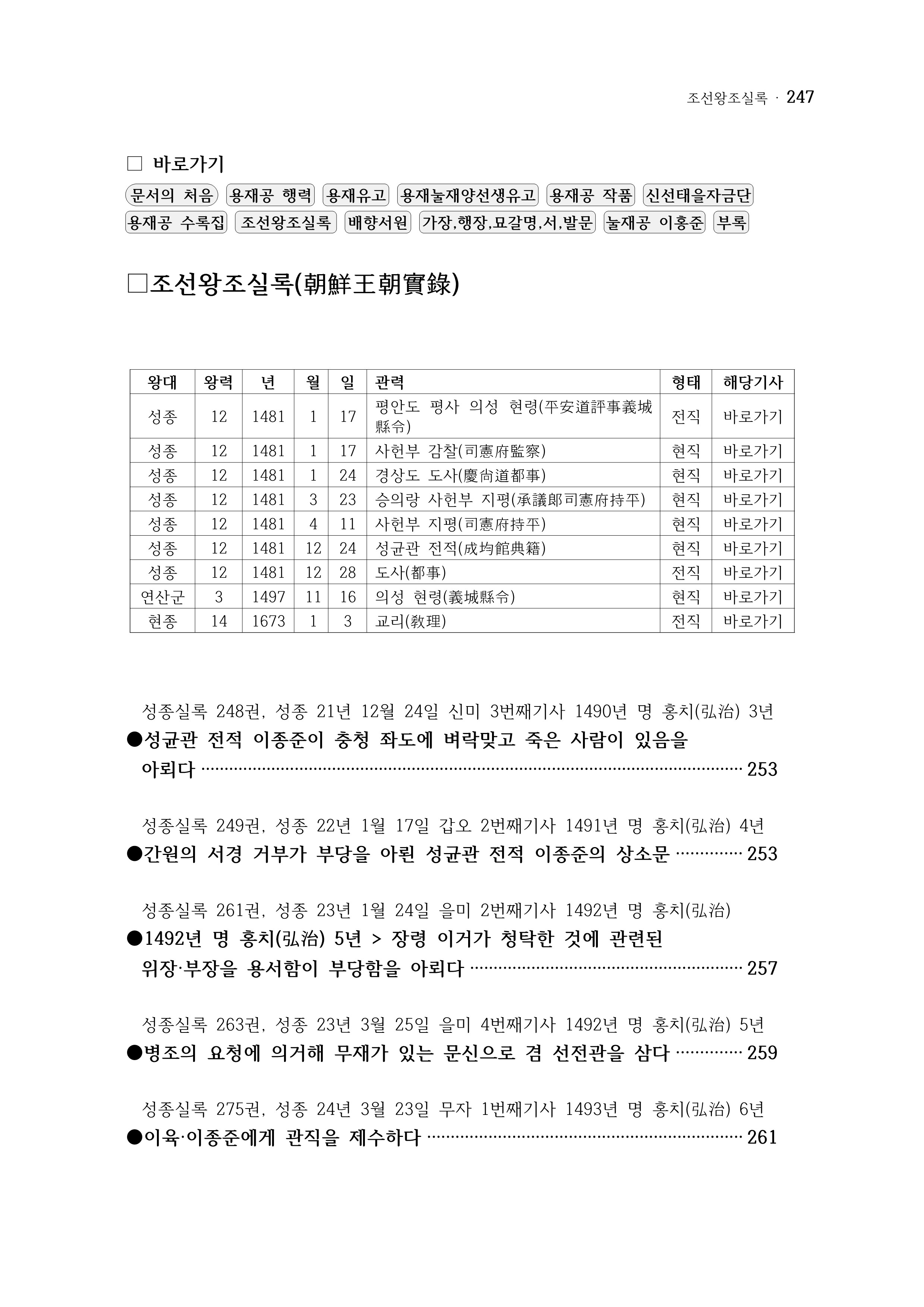 □용재공(慵齋公) 이종준(李宗準) 행력