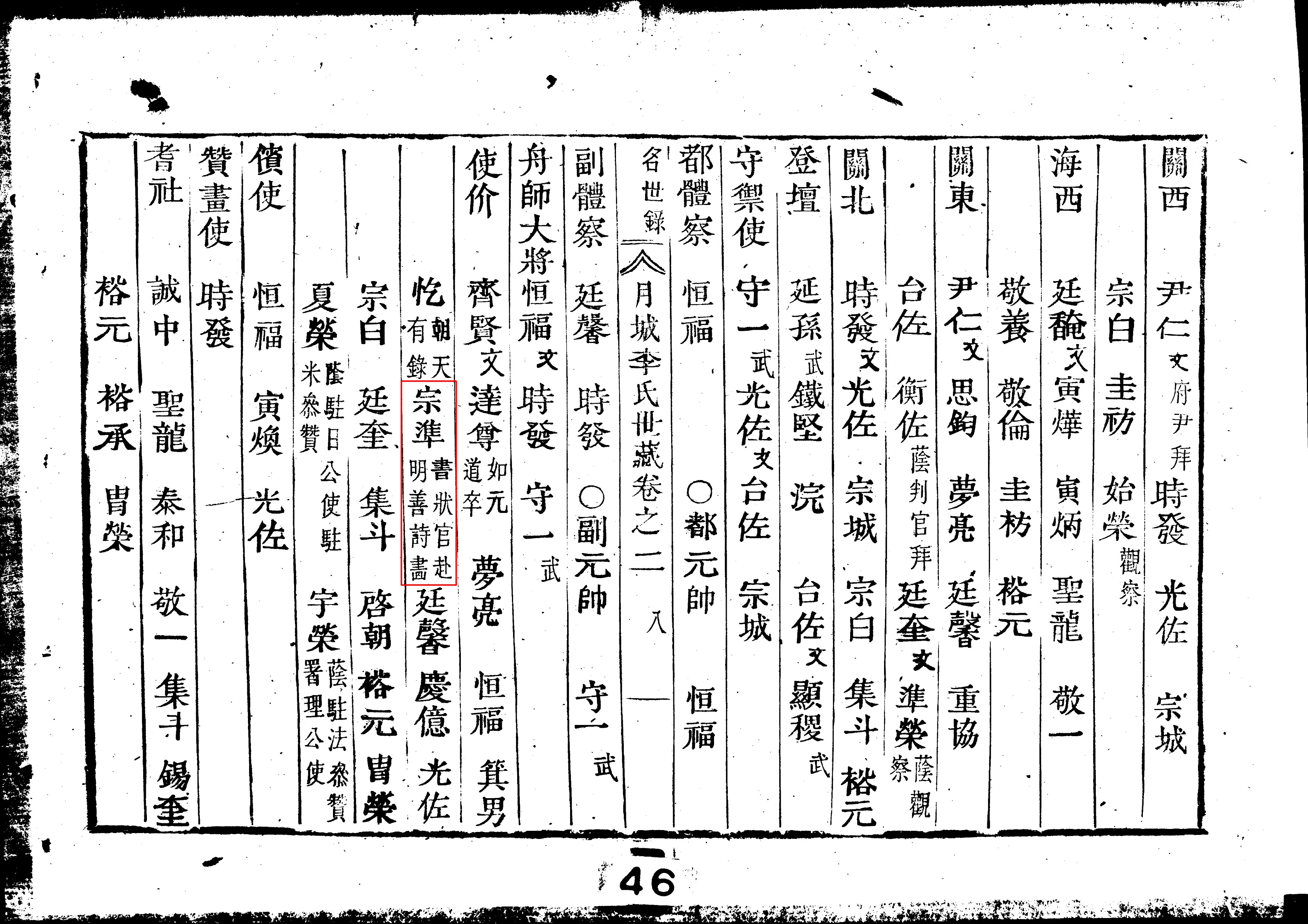 ·종준(宗準) 서장관부명선시화(書狀官赴明善詩畫) [의성현령(義城縣令) 용재공(慵齋公). 父: 금호공(琴湖公) 이시민(李時敏). 祖父: 대사헌공(大司憲公) 이승직(李繩直)]]