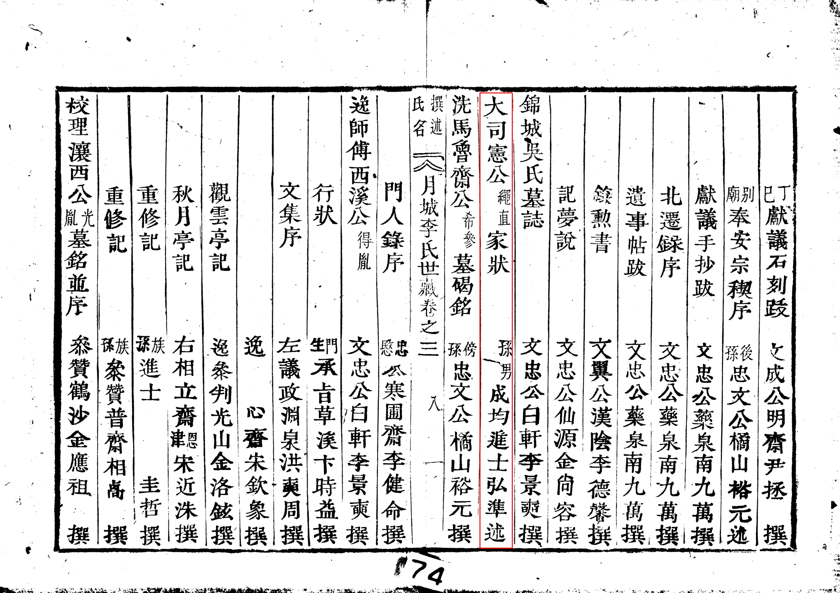 ·대사헌공(大司憲公) 승직(繩直) 가장(家狀) 손남(孫男) 성균진사홍준술(成均進士弘準述) [대사헌공(大司憲公) 이승직(李繩直). 父: 화헌공(花軒公) 이만실(李蔓實). 월성군(月城君) 이지수(李之秀) 4세손] [눌재공(訥齋公) 이홍준(李弘準). 父: 금호공(琴湖公) 이시민(李時敏). 祖父: 대사헌공(大司憲公) 이승직(李繩直)]