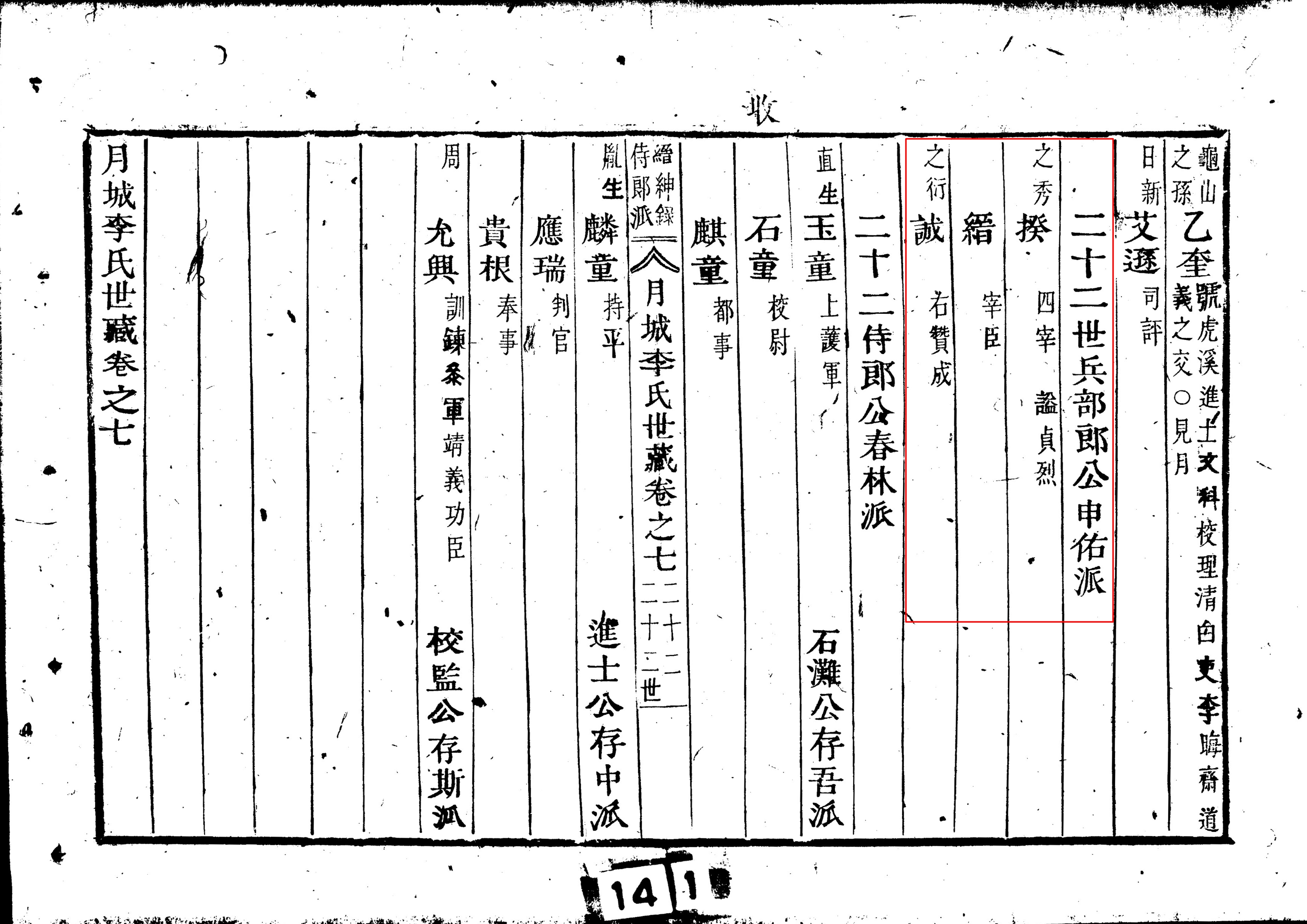 ○二十二世 병부랑공신우파(兵部郞公申佑派)