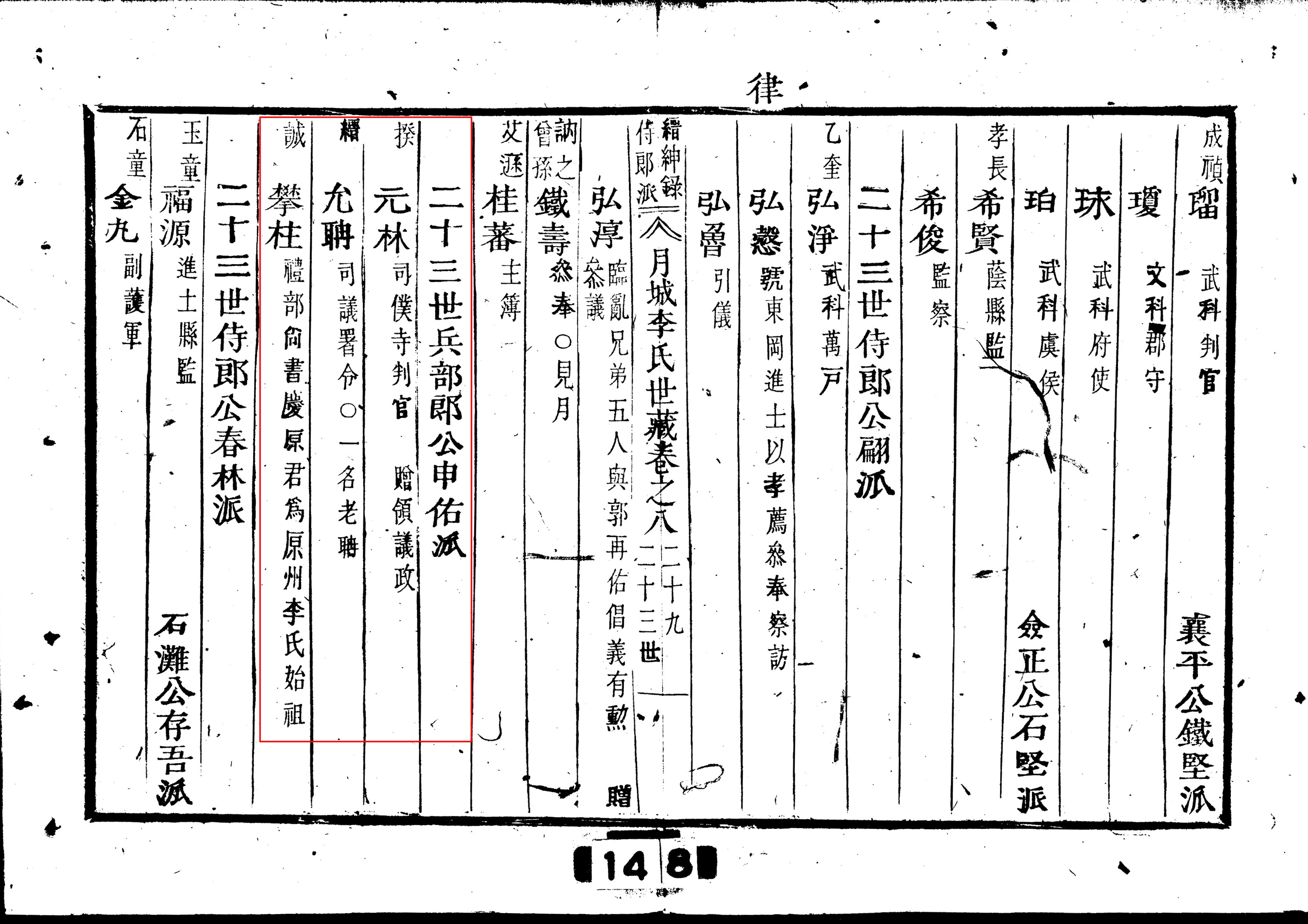 ○二十三世 병부랑공신우파(兵部郞公申佑派)