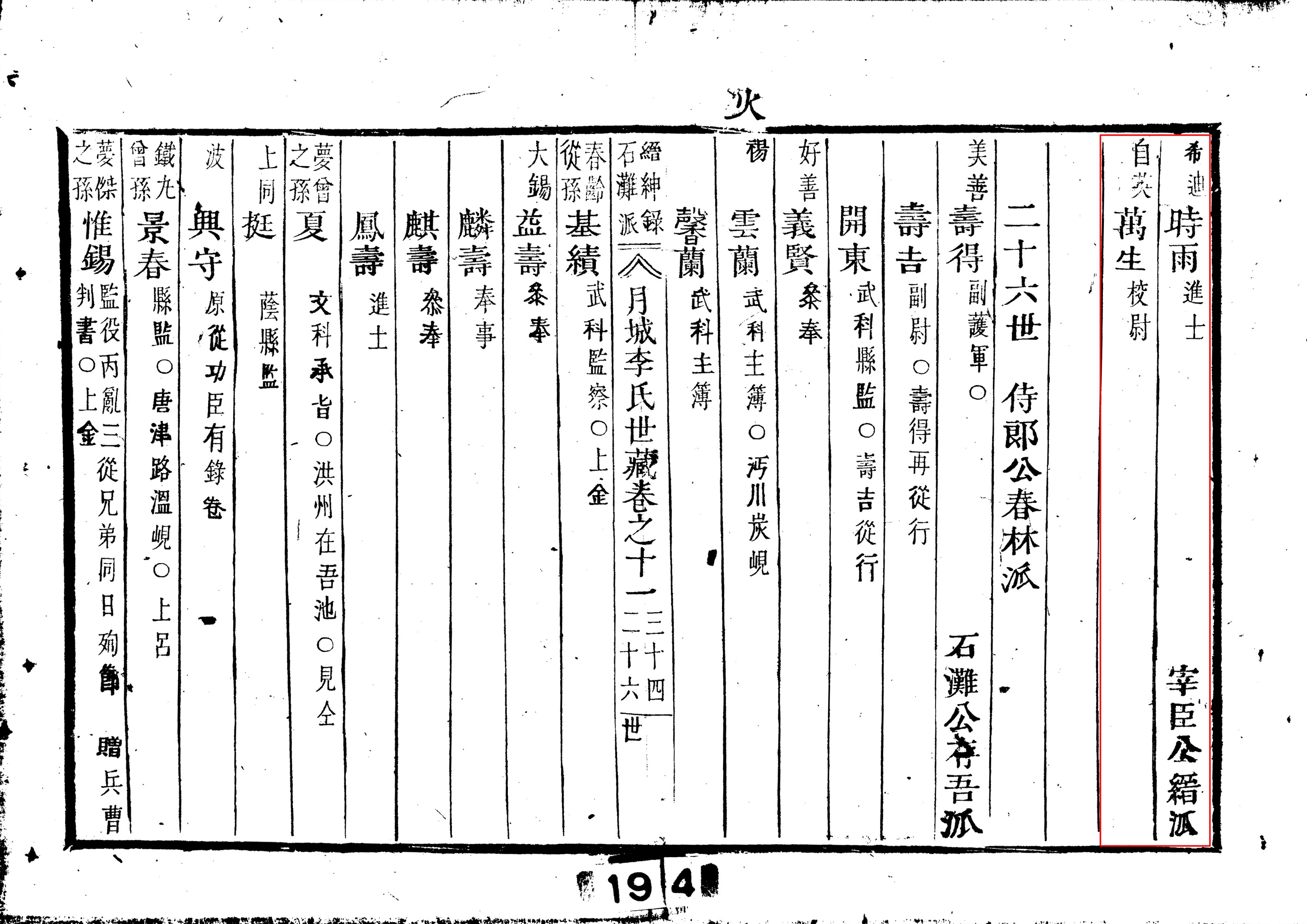 ·자영(自英) 만생(萬生) 교위(校尉) [재신공(宰臣公) 이진(李縉) 4세손]