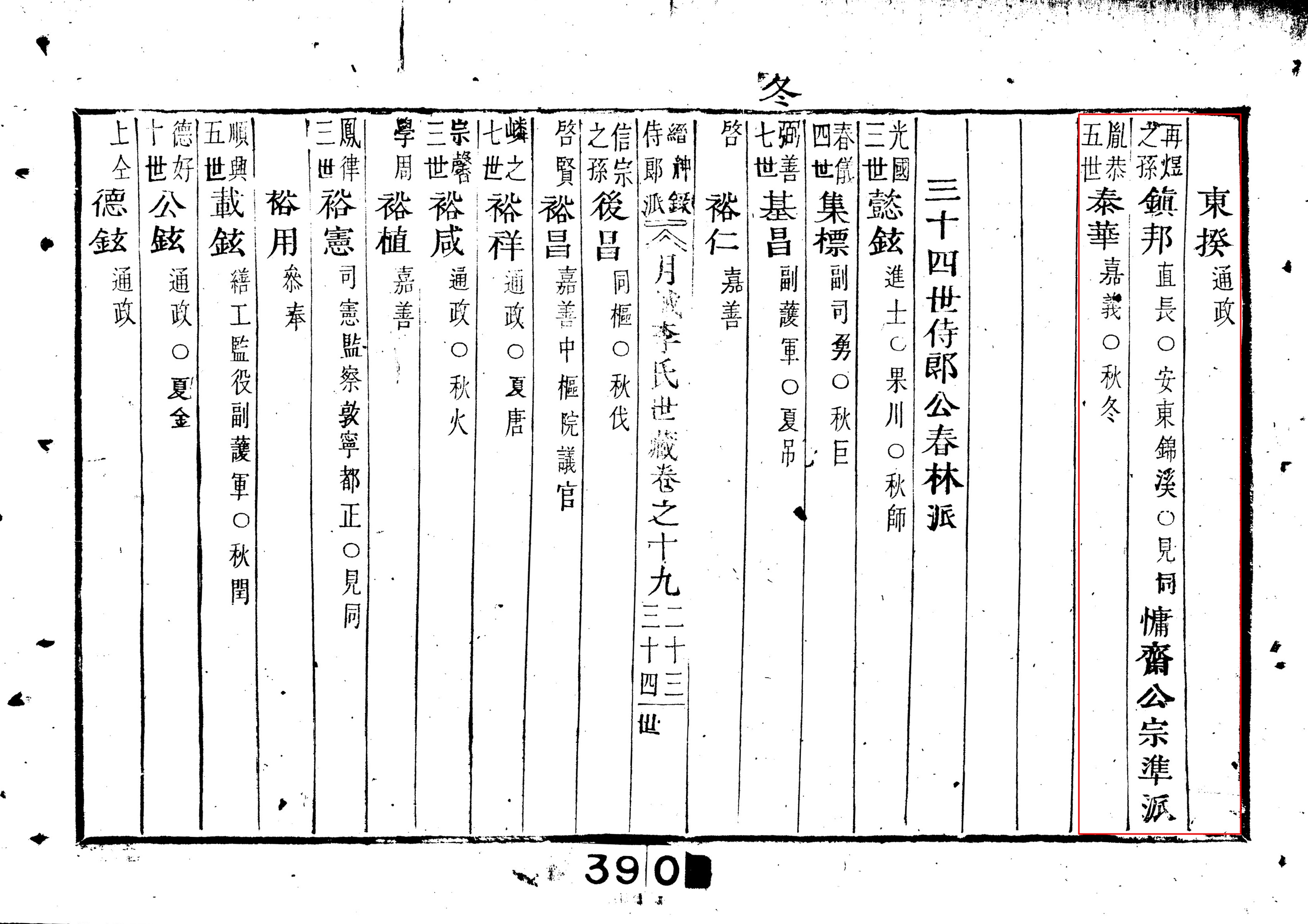 ·윤공오세손(胤恭五世孫) 태화(泰華) 가의(嘉義) ○추동(秋冬) [父: 명식(命植). 용재공(慵齋公) 이종준(李宗準) 7세손]