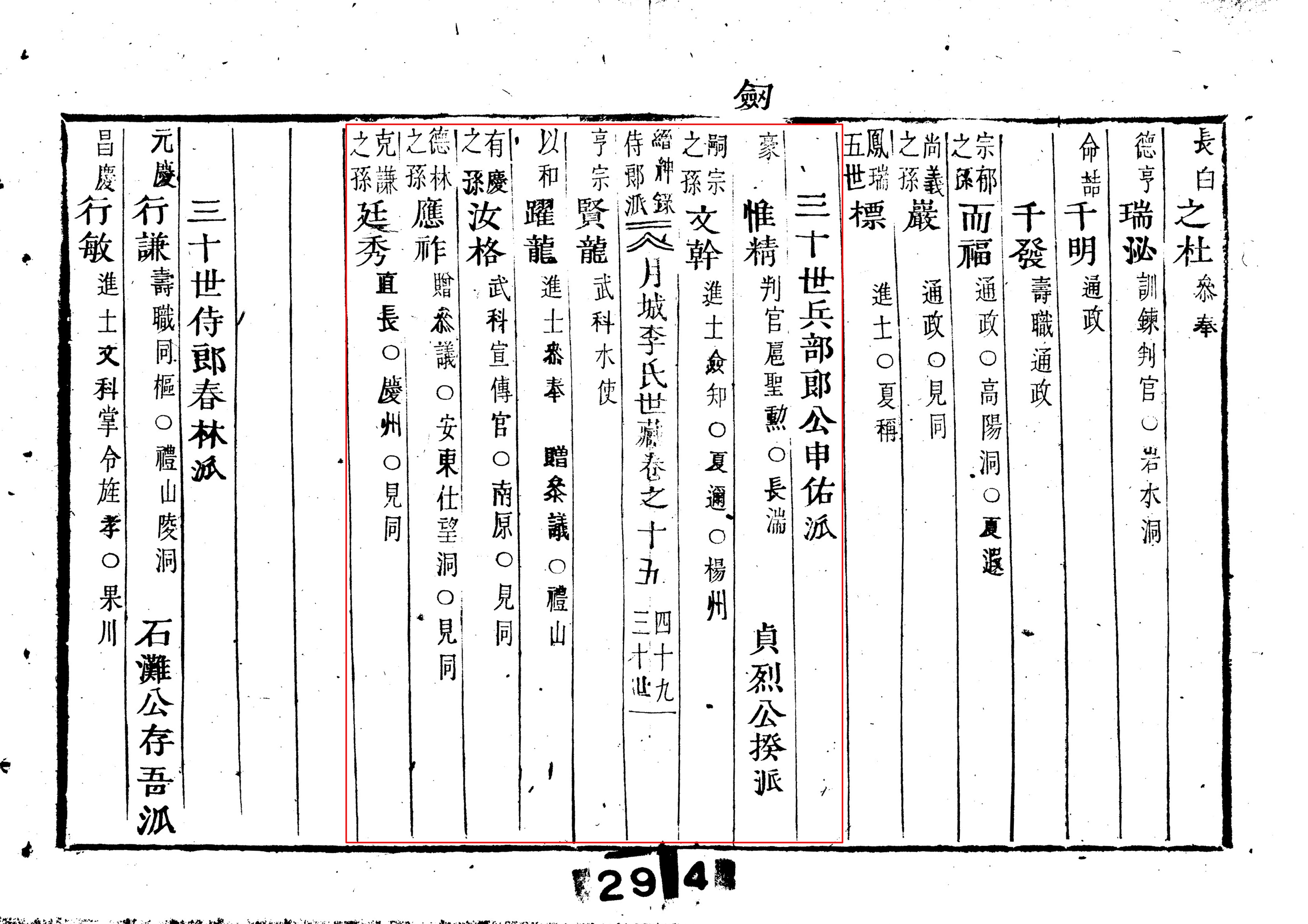 ○二十九世 병부랑공신우파(兵部郞公申佑派)
