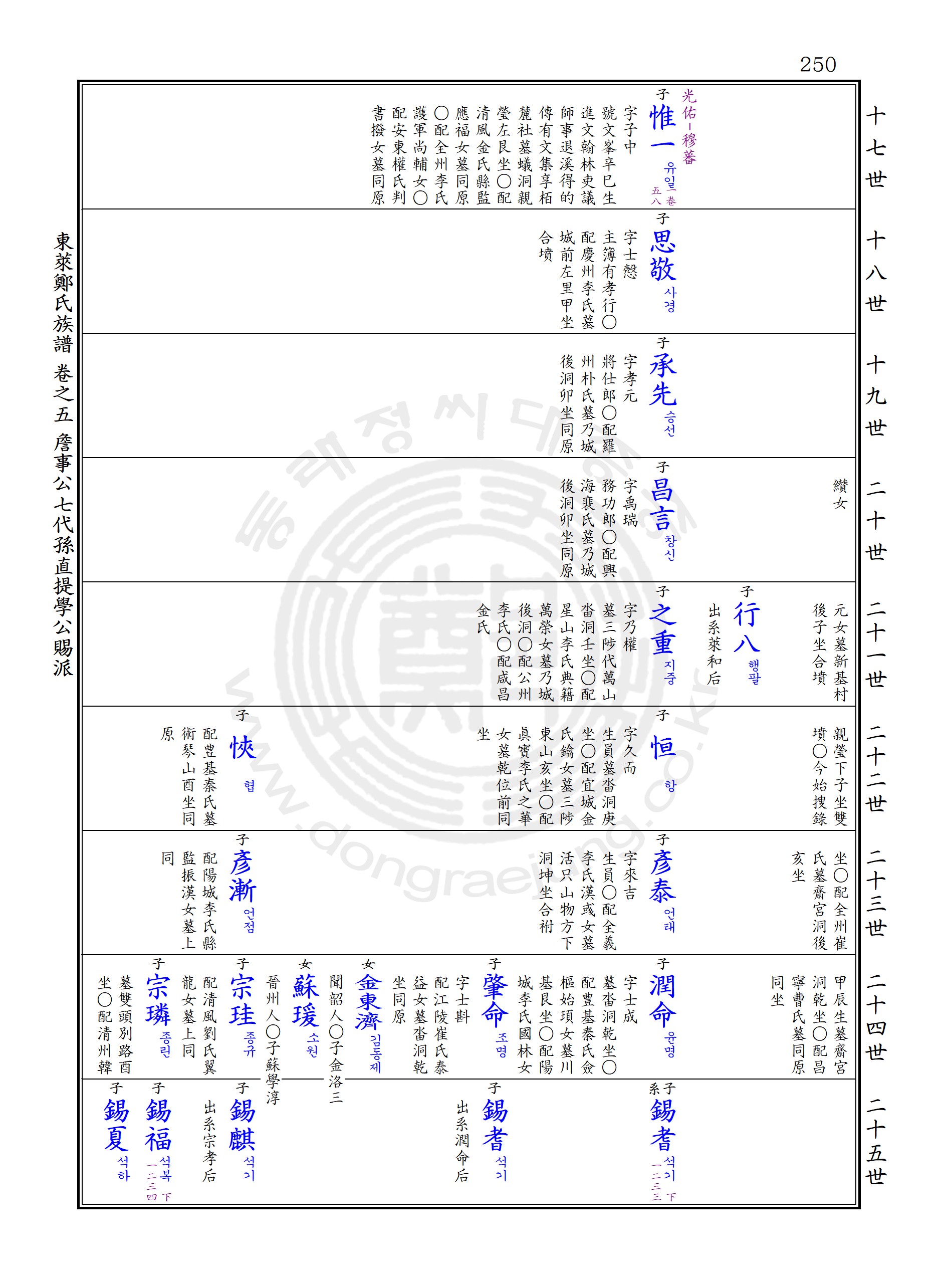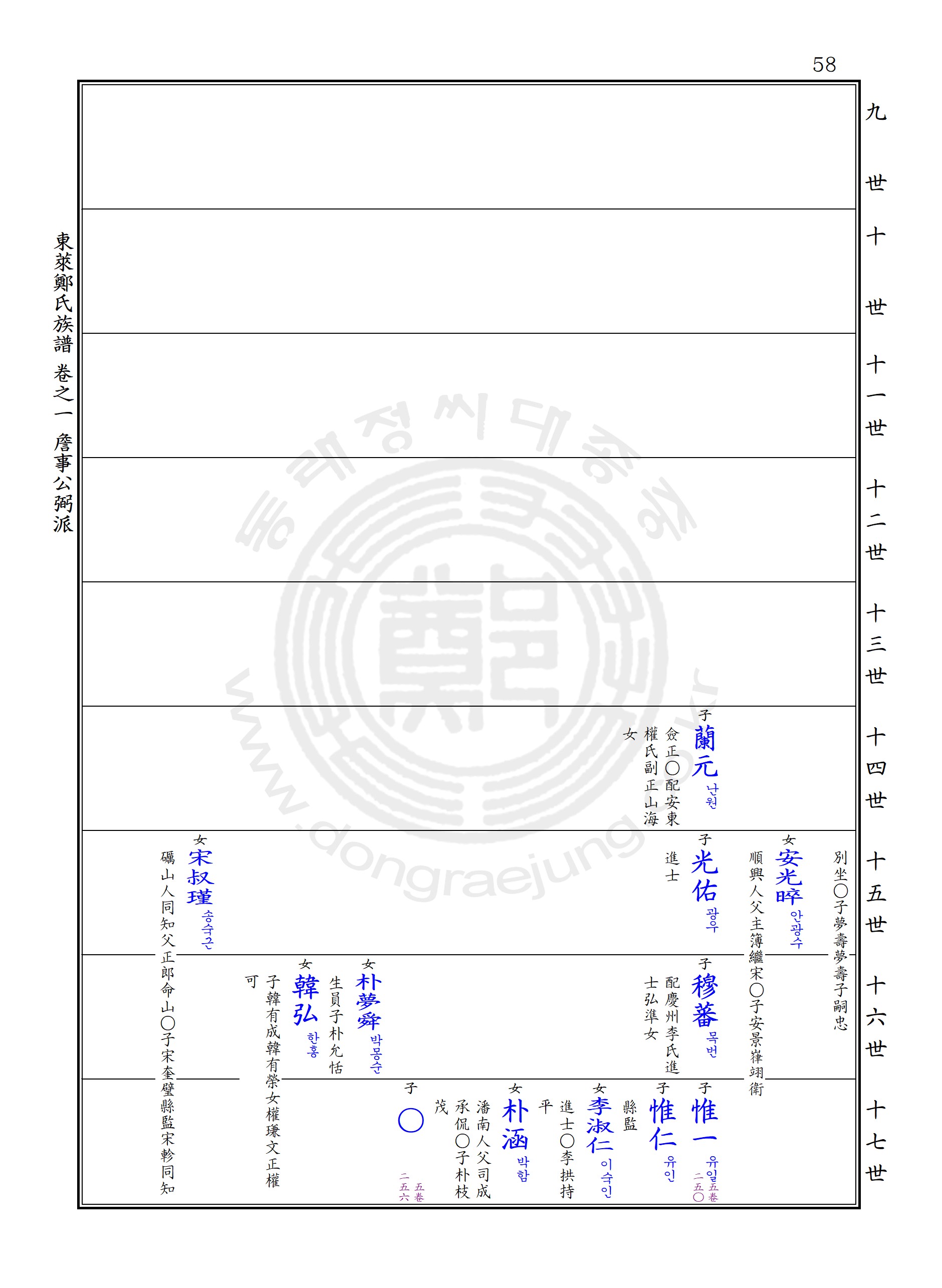 [동래정씨족보] 눌재공 외손 문봉공(文奉公) 정유일(鄭惟一)