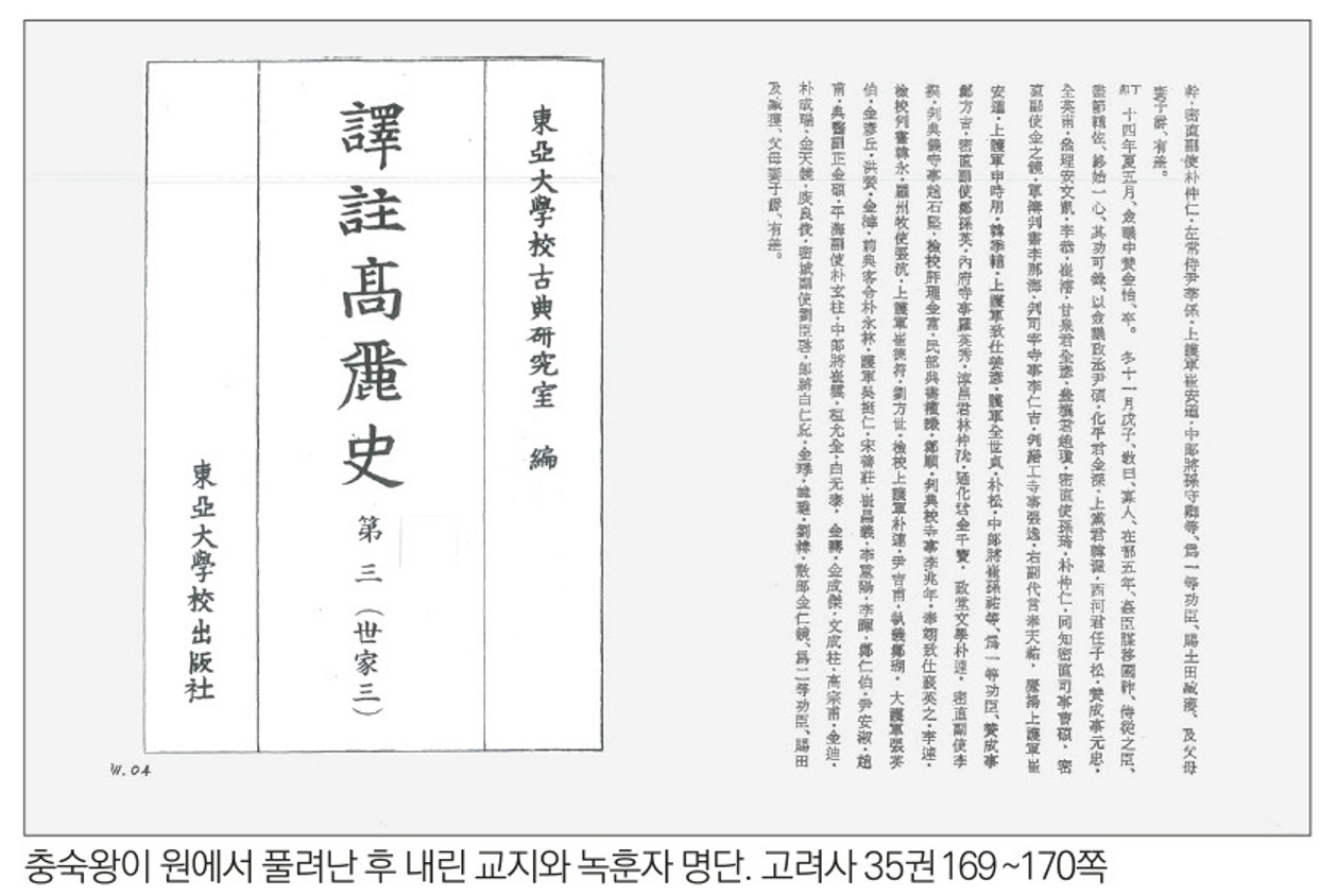 원나라 강점 이후, 고려왕의 공신 녹훈 가운데 가장 큰 규모다. 원과 친원파(親元派)의 간신배에게 얼마나 시달리고 설움을 받았으면…. 여러 의미를 부여할 수 있는 공신 책록이다(고려사 제35권 341〜342쪽).