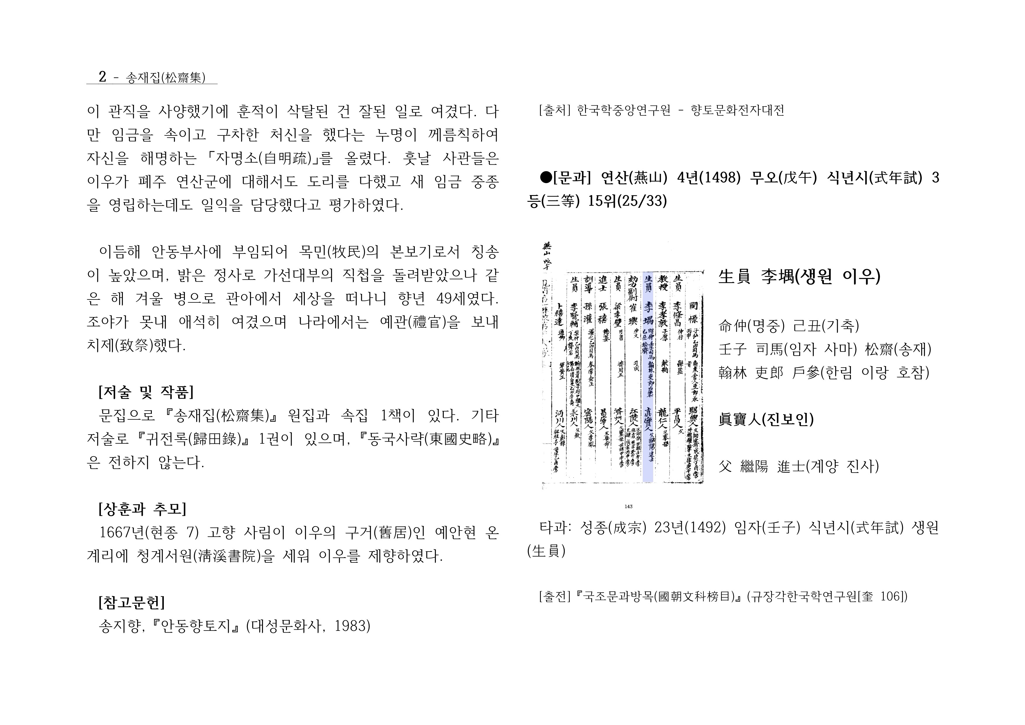 '선조문집 > 송재집송재이우' 카테고리의 다른 글